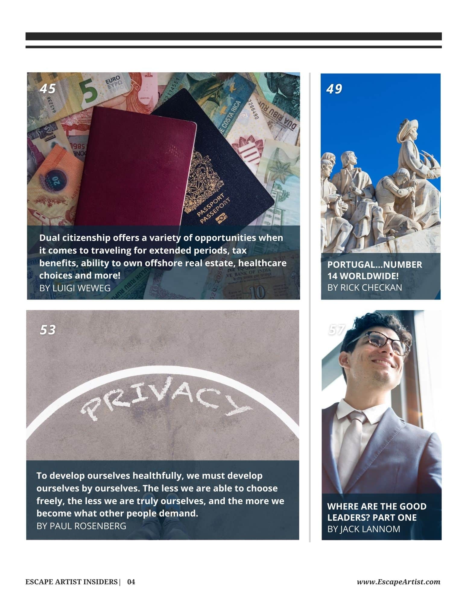 Escape Artist aims to be the most comprehensive source for information, resources, analysis, and insights for the internationally-minded. With offices in the United States, Belize, Panama, and Portugal, Escape Artist was established with a mission to inspire and engage consumers with credible news and unique content, while building an international expat community.
