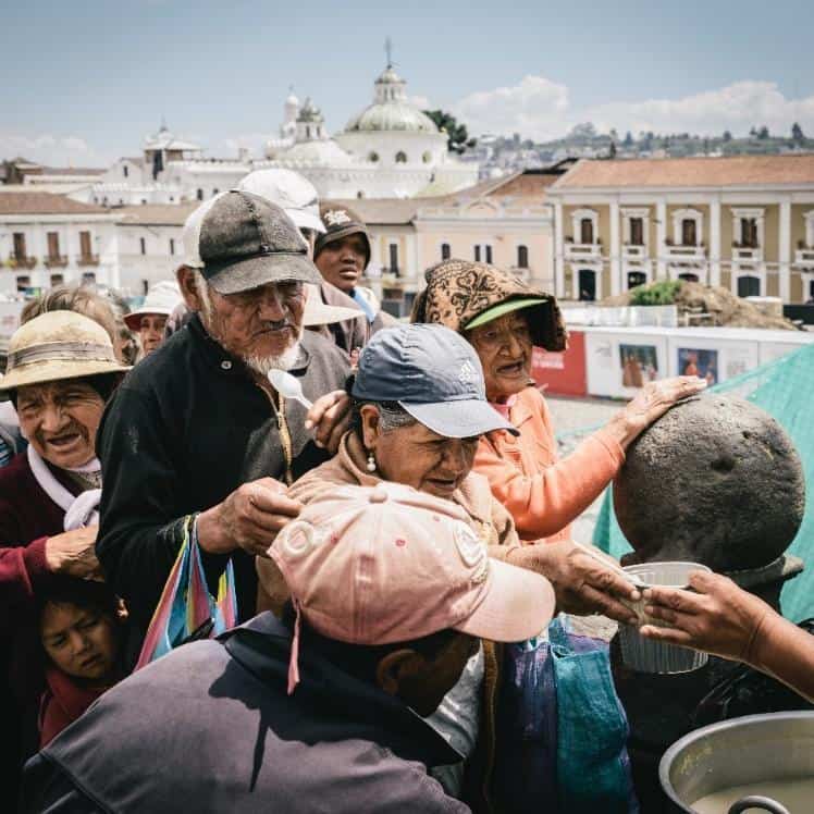 The square in front of the church is a popular gathering place. On this occasion, a local charity was hosting a food drive. According to the United Nations Human Development Report, 40% of Ecuadorians live on less than $2 a day.