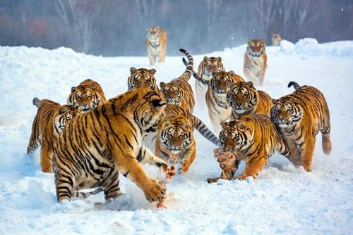 Oh, yes, Harbin also has the world’s largest tiger preserve. The Siberian tiger is the world’s biggest cat, and there are over 800 wild Siberian tigers here in their natural (albeit safely enclosed) habitat. Watching them being fed live game close up is a memorable sight: