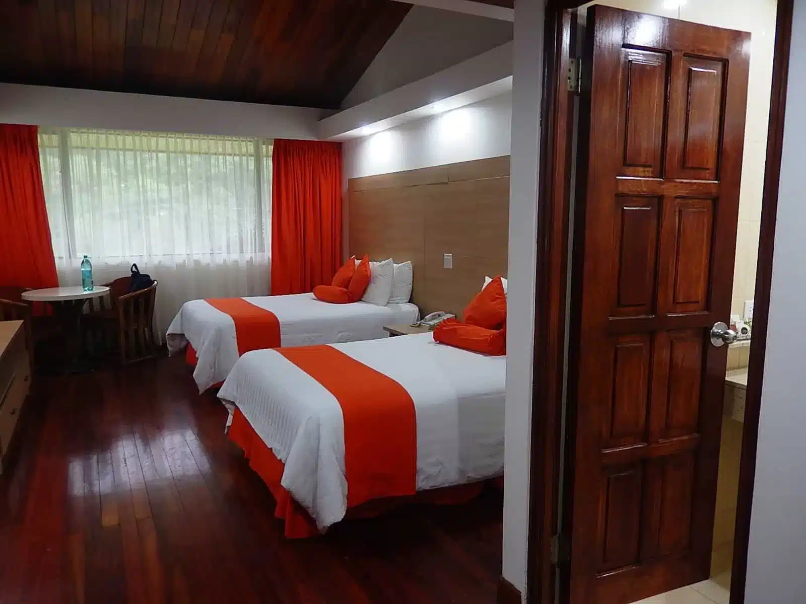 55 -Bambito roomThe room and view were comfortable and clean, with a mini fridge, TV (no English station), and coffee maker. I thought it was a bit odd that the coffee cups were tiny espresso cups though. I had to have 4 the next morning to wake up! There is no AC, but it’s not needed at this cool elevation.