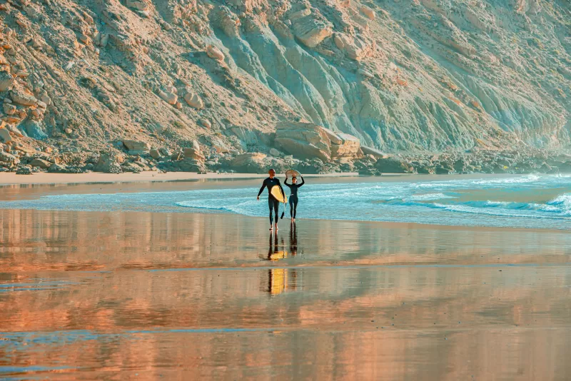 Tamraght began as a rustic surf village in the early 2000s, offering affordable surf camps. With a dozen beaches directly adjacent to the village and many more within a short drive, it became an exceptional base for beginners and pros alike from September through May. Since those humble beginnings, the surf scene has exploded. Its accessibility and affordability have made it an increasingly appealing choice for surf-focused remote workers.
